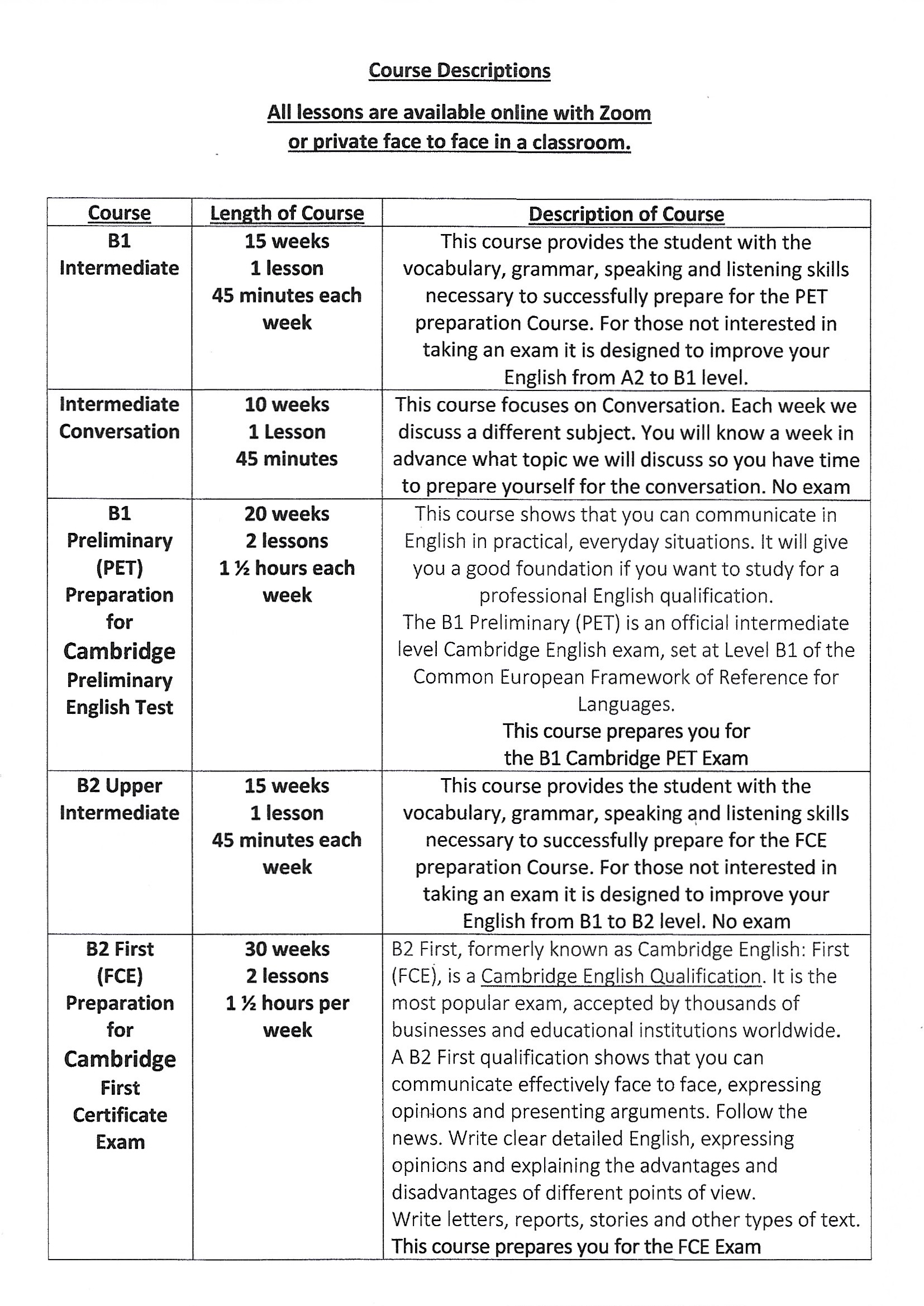 Levels of English